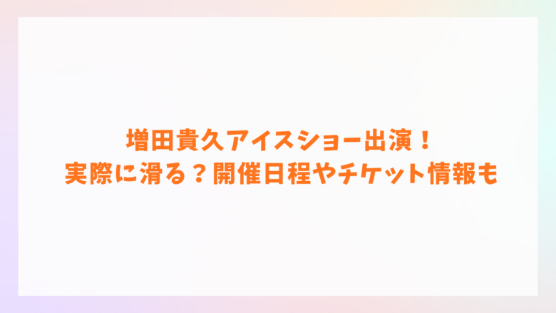 2026年5月に開催されるアイスショー「The MELT-Cross of Roots」に、増田貴久さんの出演が決定! そこで今回は、増田さんがどのような形で出演するのか、開催日程やチケット情報も合わせて調べてみました。 【増田貴久さん出演アイスショー】滑る?歌のみ... ドラマ