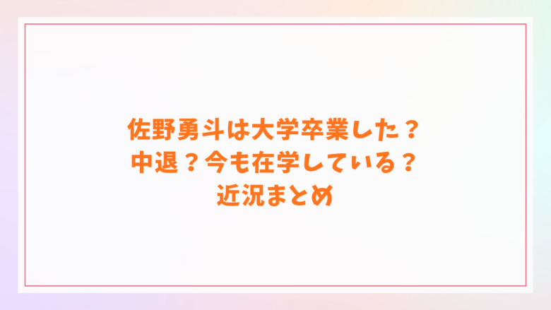 佐野勇斗は大学卒業した?中退?今も在学している?近況まとめ